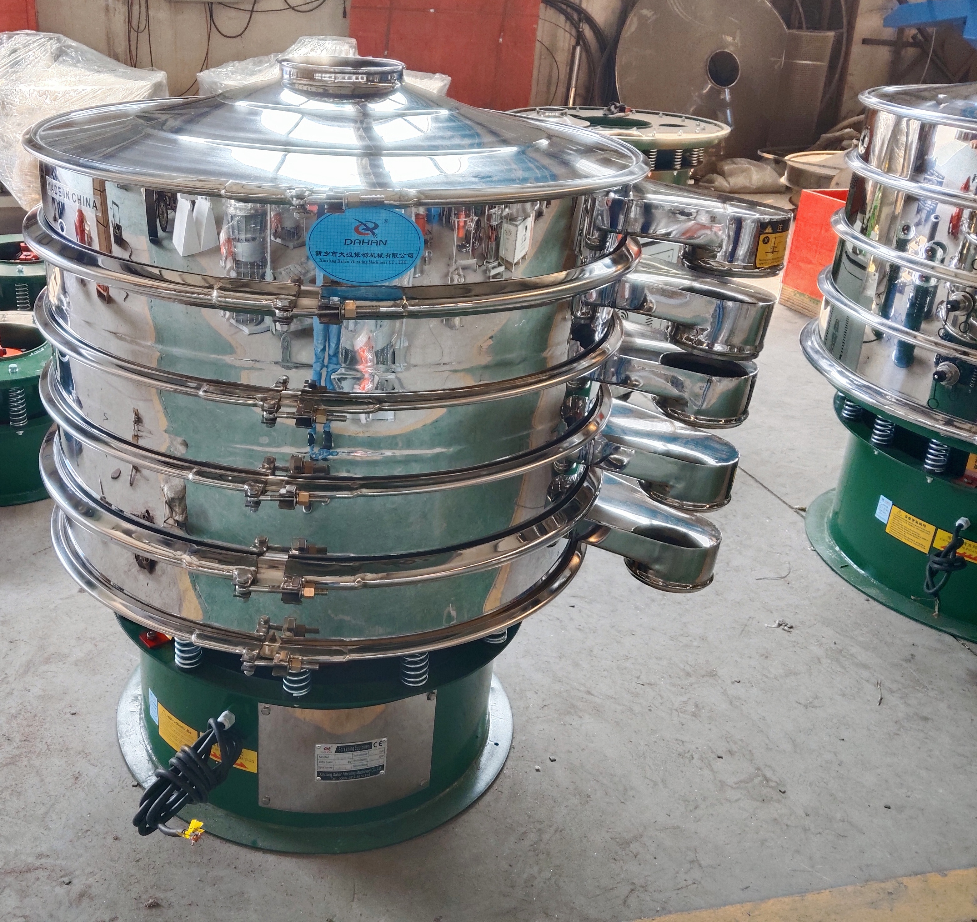 DH 系列振动筛分机采用三次元旋振设计,筛分细腻可达 500 目,筛网不易堵孔、换网便捷,适配粉粒与粘液物料。整机提供有不锈钢材质耐用易清洁,可连续自动排杂,广泛用于食品、化工、医药等行业。