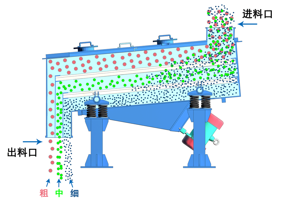 标准的振动筛分机设备工作原理是利用振动原理来实现不同物料分级或筛选,通过振动源带动筛箱运动,使物料在筛面上做定向运动,依据颗粒大小差异透过不同孔径的筛网,从而完成物料的分离与提纯。根据振动筛分机设备的工作原理,制造设备的型号也不同。